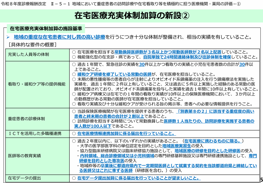 令和8年度の在宅医療に係る診療報酬改定で、一番大きい改定が、在宅医療充実体制加算と思います。